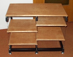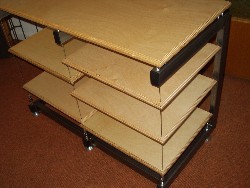 Der Unterschied zu Rack 2 besteht in der Konstruktion des Stahlrahmens. Die Böden werden nach Kundenwunsch klar, in Kirsche, Buche oder Ebenholz gewachst. Das erste Foto zeigt ein schwarz beschichtetes Rack, bei dem die Böden in Kirsche gewachst wurden. Auf dem zweiten Foto ist der Rahmen aus rohem Stahl, die Böden wurden klar gewachst, zudem ist ein zusätzlicher Boden vorhanden. Das Rack ruht auf fünf Füßen, die in der Höhe einstellbar sind. Farbbeispiele sind auf dem folgenden Foto zu sehen. ![]() Maße: 970/ 500/800 (B/ T/ H) in mm Sondermaße fertige ich auf Anfrage Auch andere Beschichtungen (alle gängigen RAL- Farben ) sind möglich Zurück zu "Racks" |