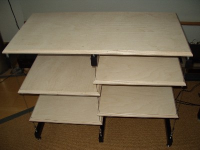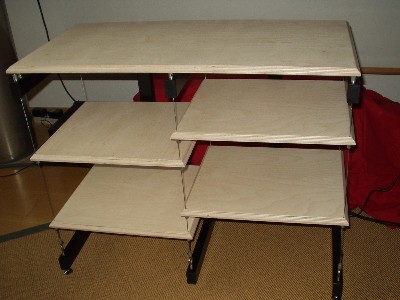 Zweireihiges HIFI - Rack aus kunststoffbeschichtetem 30 x 50 mm Vierkantrohr, in Verbindung mit