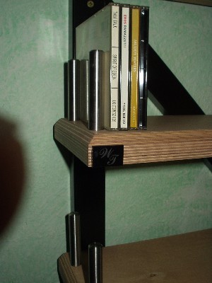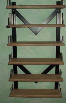 Es besitzt sechs Böden, die jeweils ca. 56 Cds aufnehmen können. Die Edelstahlstäbe dienen zur seitlichen Begrenzung. Die Platten werden gephast, mehrfach gewachst und poliert. Bei dem abgebildeten Regal wurden die Böden in Buche gewachst. ![]() Das Regal ist zur Wandmontage bestimmt und wird mit vier Schrauben montiert. Maße: 650/ 210/ 1180 (B/ T/ H) in mm Der Abstand zwischen den Böden beträgt 180 mm Sondermaße fertige ich auf Anfrage. Auch andere Beschichtungen (alle gängigen RAL- Farben ) sind möglich Zurück zu "Regale" |