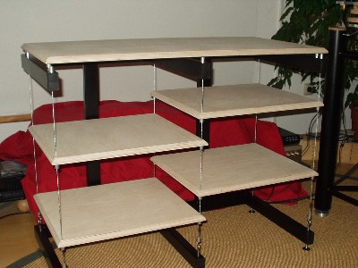 Zweireihiges HIFI - Rack aus kunststoffbeschichtetem 30 x 50 mm Vierkantrohr, in Verbindung mit